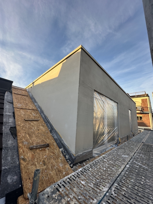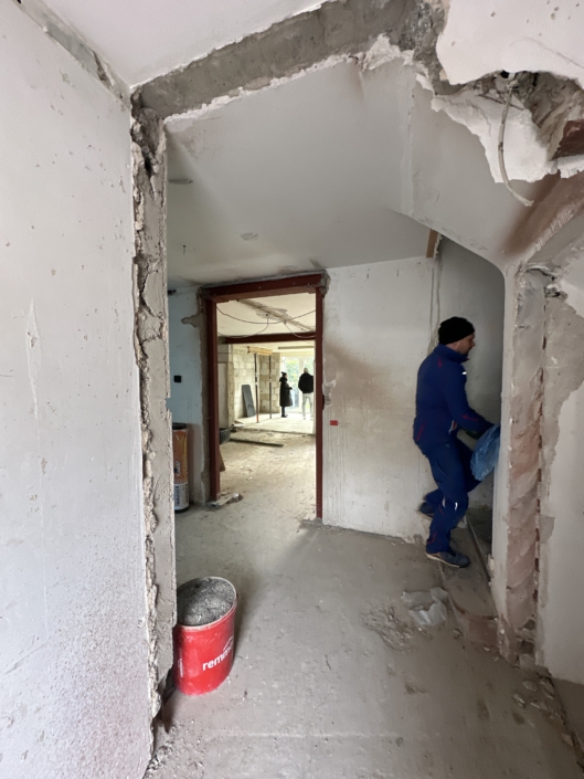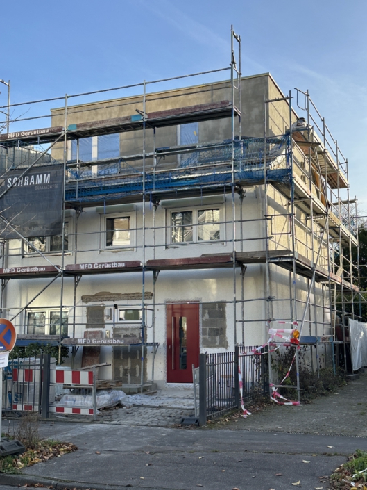 1952 wurde dieses 8,3 m breite Reihenhaus für belgische Offiziere gebaut, mittlerweile sind alle Häuser in Privateigentum. Mit einem neuen Anbau im Garten wird die ebenerdige Wohnfläche vergrößert. Dadurch wird der bisher zur Südseite exponierte Außenraum besser gegliedert in eine schattige Terrasse für die heißen Sommermonate. Das Außengelände im Garten wird vor Starkregenereignissen besser geschützt mit einem Gefälle weg vom Haus und versickerungsoffenen Flächen bzw. einem begrüntem Retentionsdach. Innen wird die komplette Haustechnik, die Küche und Bäder rundum erneuert. Mit dem großen Ausbau des Dachgeschosses wird weiterer Wohnraum in der Innenstadtlage geschaffen und somit wird das Haus flexibler auf kommende Generationen sich anpassen lassen. Auf dem neuen Dach wird Photovoltaik installiert.