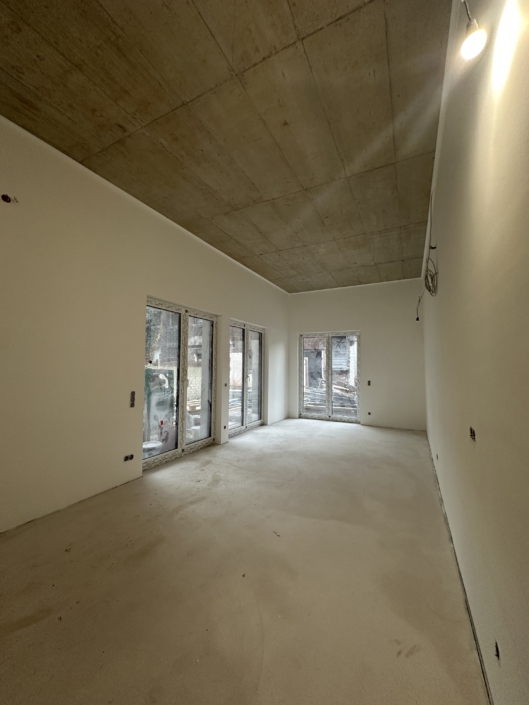 Der Bauherr wünschte hochwertige, familiengerechte Grundrisse, die bisherige Planung musste komplett überarbeitet werden. Die Abstandsflächen und städtebaulichen Rahmenbedingungen der Stadt Düsseldorf und im Besonderen die Belange des Brandschuztes mussten in Abstimmung mit den Fachplaner präzise abgestimmt werden.